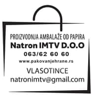 Ambalaža za pakovanje hrane – NATRON IMTV D.O.O – Marka Oreškovića 52, Vlasotince tel: +381(0) 63 62 60 60